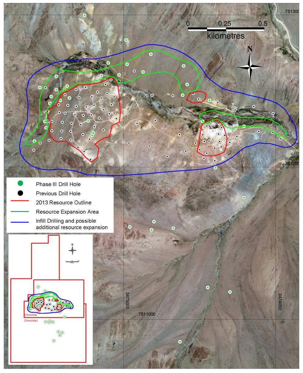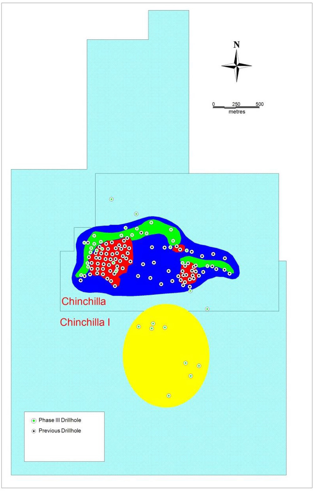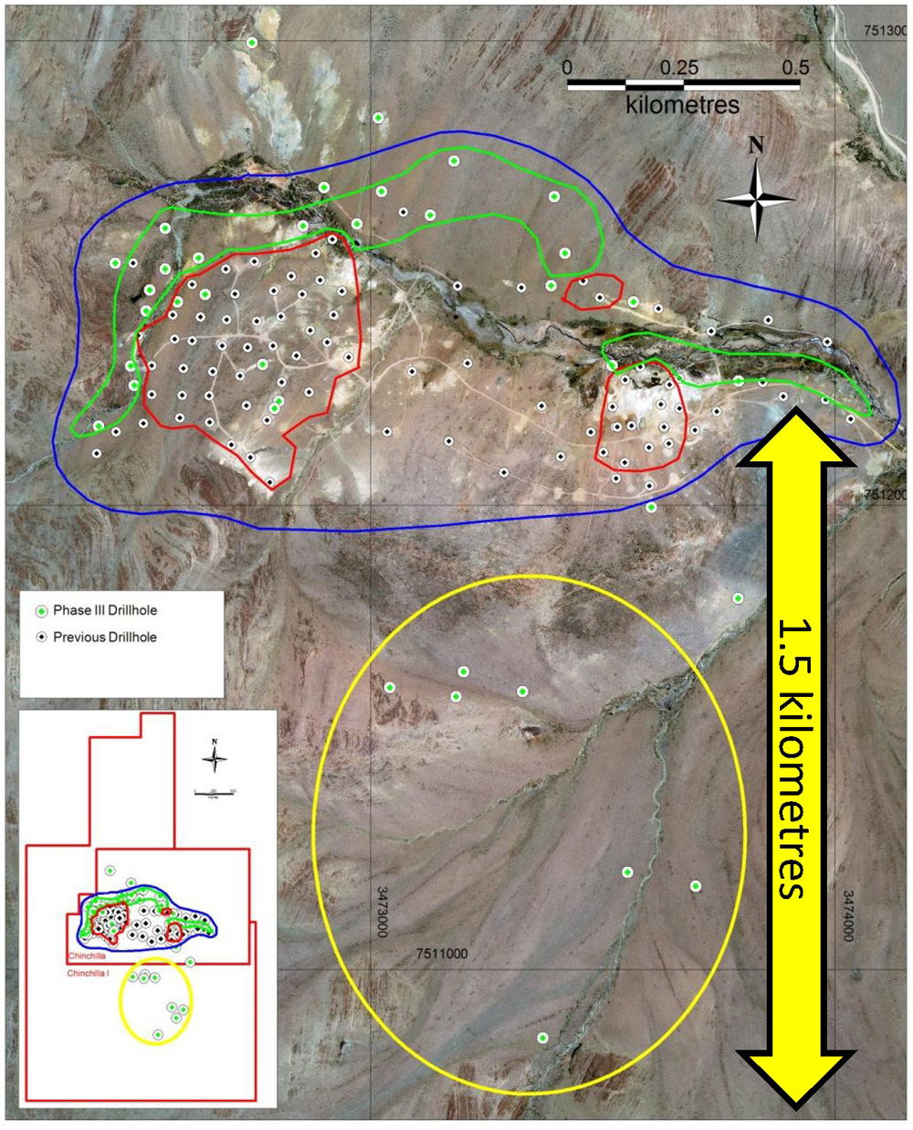 - More detailed drilling of the Chinchillas South target area (shown outlined in yellow in Figure 2 below) in order to develop additional resources for the project.
