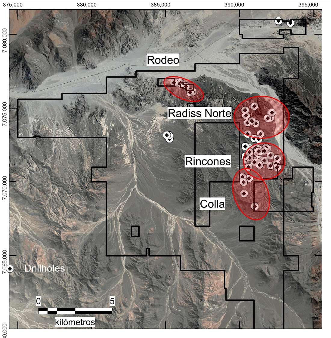 And the Radiss Norte target, located at 2.7 km north of Rincones, near surface mineralization with: